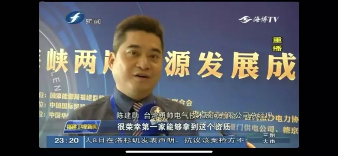 6月9日,在厦门举办的2018海峡两岸能源论坛上,福建能源监管办率先面向台湾企业颁发首张承装(修、试)电力设施资质采认书,台湾勇帅电气技术顾问有限公司总经理陈建勋上台领证。该项先行先试举措也意味着今后福建将率先向台湾企业开放电力建设施工市场。